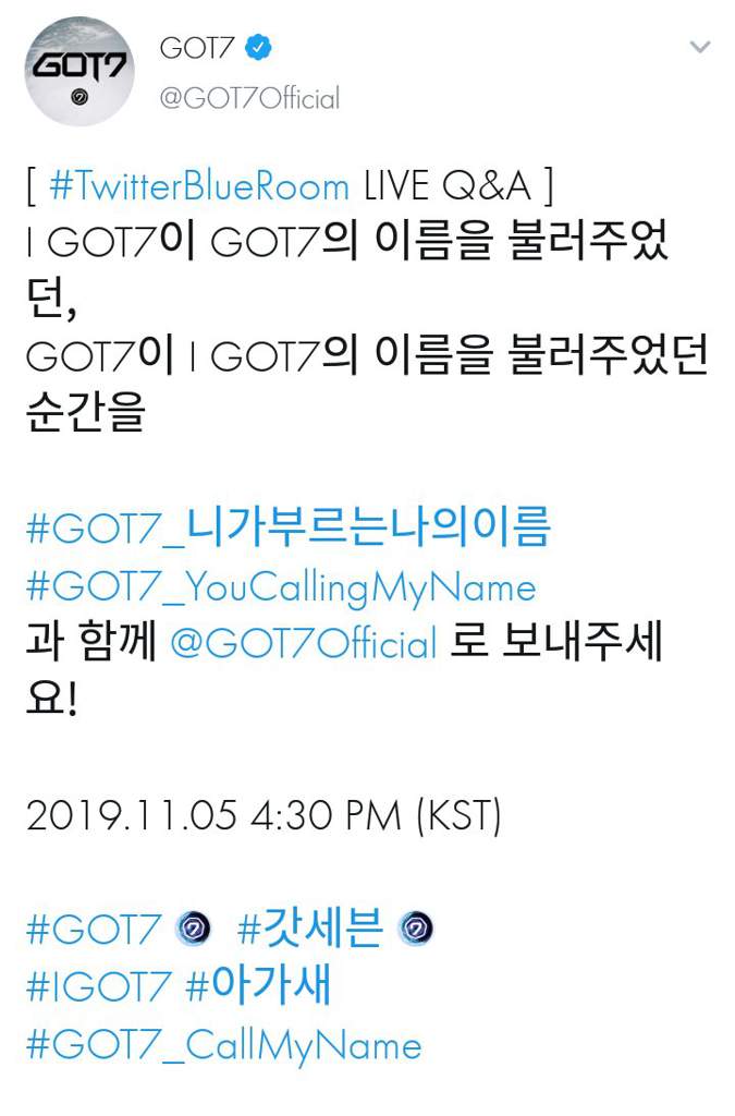 According to yeonjeong, blueroom can connect fans with artists . During the blueroom, bambam and . 4:30pm twitter blueroom live ✓ 6:00pm mv premiere with chatting #got7 #갓세븐 @got7official #igot7 #아가새 #got7_breathoflove_lastpiece . Count the number of times got7 had to clap to focus~ also big thanks to the translator who was furiously translating throughout the live~ . You may watch the full #twitterblueroom interview between got7 and twitter ceo jack dorsey here.